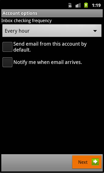 The following options are all based on preference - do note that setting an inbox checking frequency can impact on your phone`s battery life, especially on more frequent intervals.