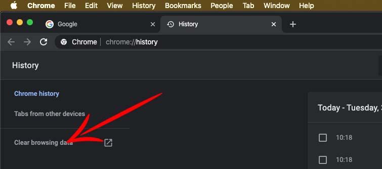 2) This will open a new page that will display your full history, towards the left of the page there is a link called 'Clear browsing data', simply click this link.