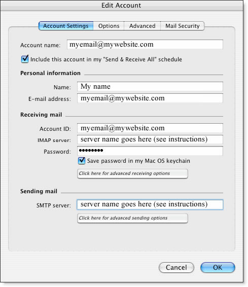 - Account Name—This will appear as the name of the account in your mailbox.