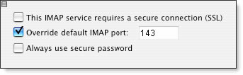 - Check the Override default SMTP port box, and enter the IMAP port: 143