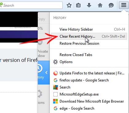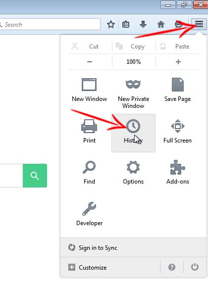 1) In the top right of Firefox, press the menu icon, then press the 'History' tab.
