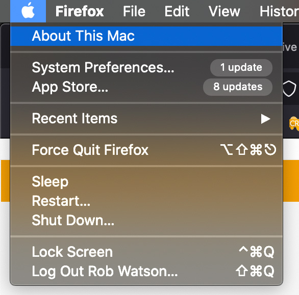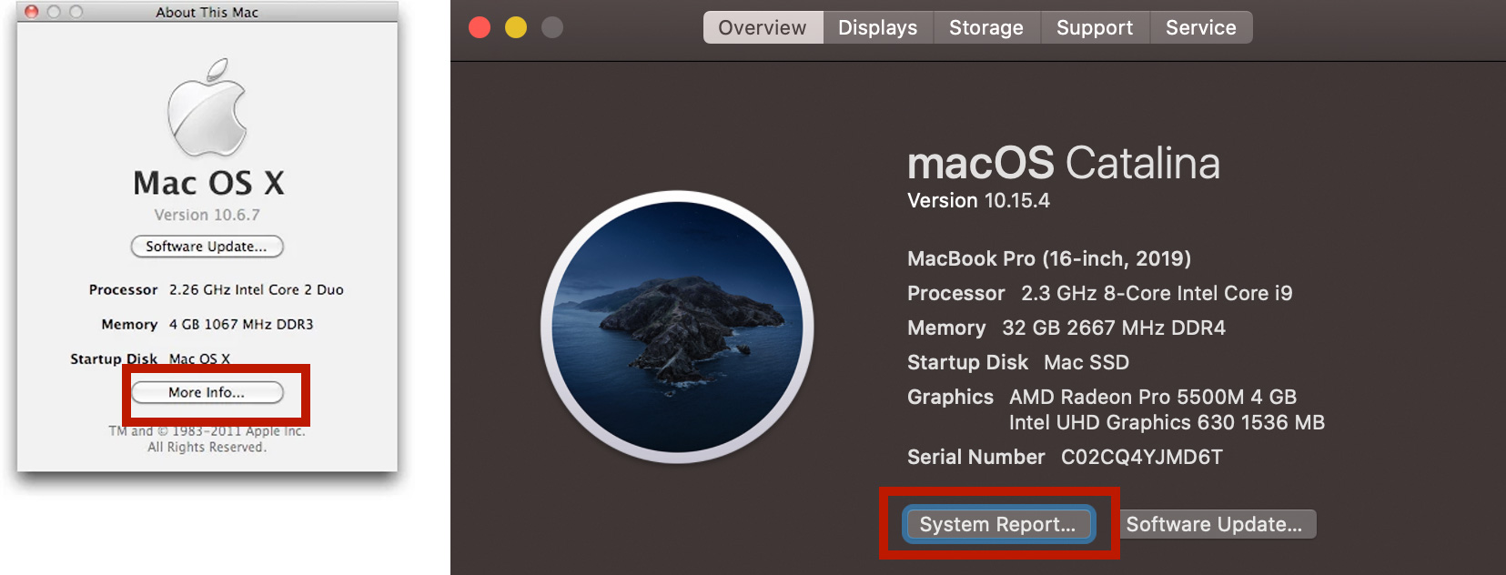 This screen will also tell you which version you're currently running, eg OS 10.6.7 or OS 10.15.4 as per the screenshots below.