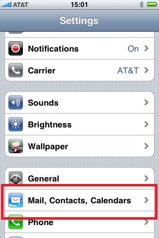 Scroll down and click on "Mail, Contacts, Calendars"