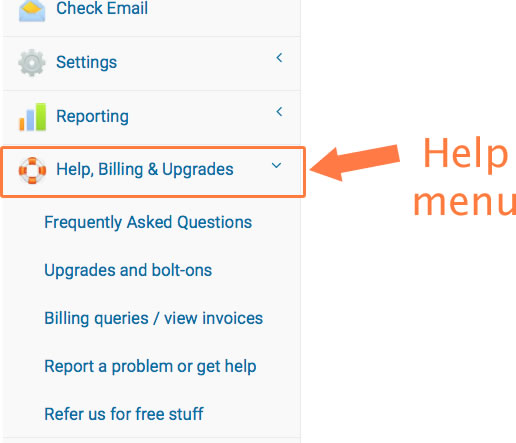 - If using a computer / laptop, scroll down on the menu on the left and click on "Help, Billing & Upgrades"
