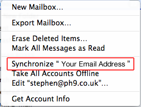 Then right click on Inbox and then click on Synchronize "EMAIL ADDRESS".
