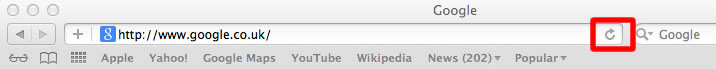 Your web browser will have a refresh icon. We have provided screenshots below of roughly where you can find this icon (we say "roughly" as each web browser does tend to change what the button looks like and where to find it from time to time, however this guide should give you a pretty good idea).