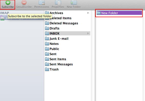 A new window should appear, click on the folder(s) you wish to Subscribe to and then click the Subscribe button at the top left of the small window.